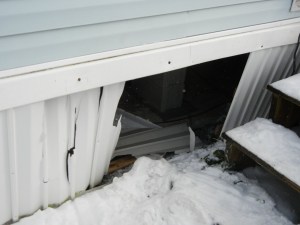 We are stuck. We don’t have money to pay another security deposit. We were just two days without water because the pipes froze due to the siding being gone. The landlord said he replaced it all, why would you use siding that has already holes in it and is damaged?
