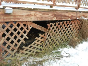 We are stuck. We don’t have money to pay another security deposit. We were just two days without water because the pipes froze due to the siding being gone. The landlord said he replaced it all, why would you use siding that has already holes in it and is damaged?