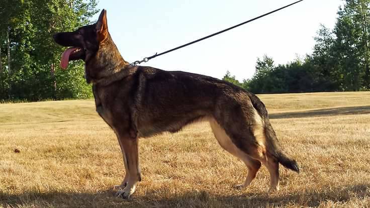 She is linebred 3-4 on Wotan vom Baerenfang (Lex van de Sijsjeslijmer) which gives us 4-5 on Happy vom Baerenfang and 5-6 on Arek vom Stoffelblick. Wotan himself was linebred 3-2 on Gildo vom Koerbelbach. She also brings in Pike von der Schafsbachmuehle and with that Basko vom Flughafenrand. As you can see, we got DeJa with a very specific purpose in mind. She will hopefully be our future breeding female and so far, we couldn’t be happier. DeJa has Excellent Hips and Elbows – she is DM Clear by Parentage. She has passed her AD, BH and the GPr1. After her litter with Arro, we would like to continue to title her in Article Search and maybe even put a Brevet on her.